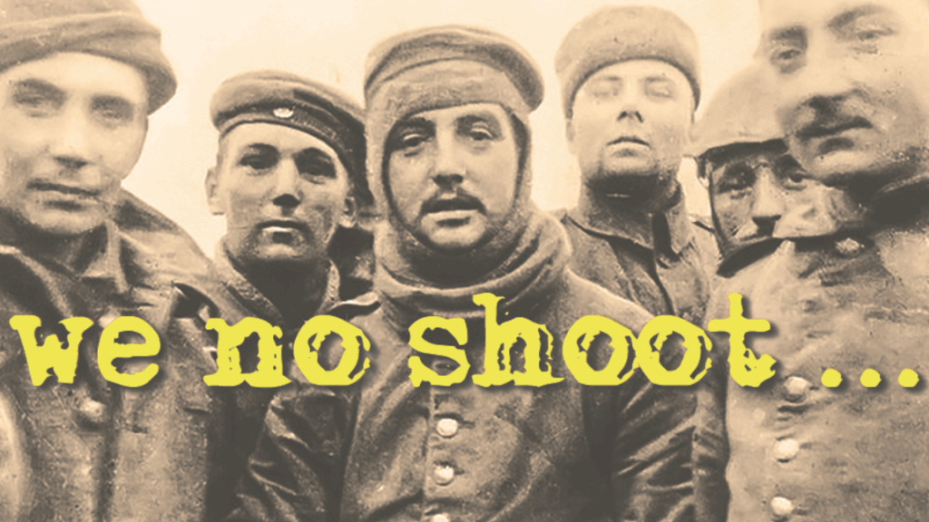 Die Ausstellung zeigt historische Materialien aus dem 1. Weltkrieg, u.a. Fotos von britischen, russischen und deutschen Soldaten, wie sie Weihnachten 1914 spontan einen temporären Frieden schließen. Sie tanzen miteinander, spielen sogar Fußball, zwischenden Schützengräben, in voller Montur. Die Bilder wirken unmittelbar, zunächst vielleicht belustigend & befremdend. Sie berühren aber eine zutiefst humane Seite. Nicht die Uniform verbindet die Protagonisten, sondern der ungekünstelte Ausdruck des Augenblicks und kurzen Freiseins, der Machismo zeigt eine fragile Seite. Diese Zerbrechlichkeit wird in der Installation durch die Verwendung alter Diaprojektoren und sonstiger antiker Bildwiedergabegeräte betont.